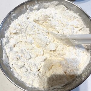 4、小麦粉をいっきに入れて切り混ぜる。