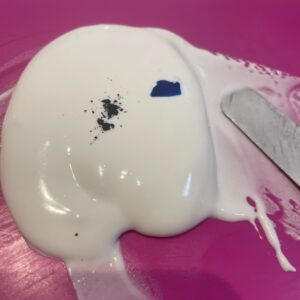 しっかり混ぜたアイシングクリームにブルーをつまようじでとり、黒の粉末を付属のスプーンで少量とって入れる。